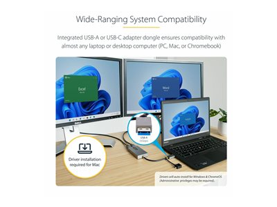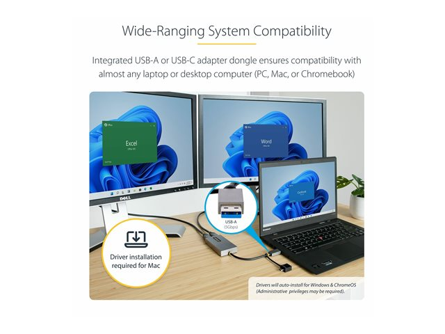 - COMPATIBILITÉ : Fonctionne avec Windows/macOS/Chrome OS V98+ (Stable Channel)/Ubuntu; Installation automatique du pilote dans Windows et Chrome OS; Nécessite le téléchargement du pilote pour macOS et Ubuntu; Fonctionne avec USB 3.0/USB-C/USB4/Thunderbolt