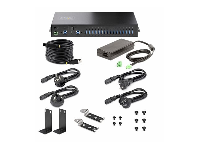 S5G16AINDS-USB-A-HUB - StarTech.com 16-Port Industrial USB 5Gbps Hub with Power Adapter, Metal Enclosure, Mountable, ESD Protection, Terminal Block Power, USB Charging, Dual-Host Switch